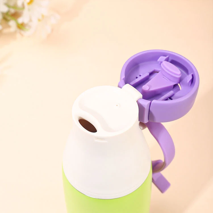 Botol insulasi stainless steel 304 kalebu botol susu dopamine, kanthi tutup bunder sing bisa gampang dibukak kanthi tarik lan dikunci kanthi mung nyurung kanggo nyegah botot botol.